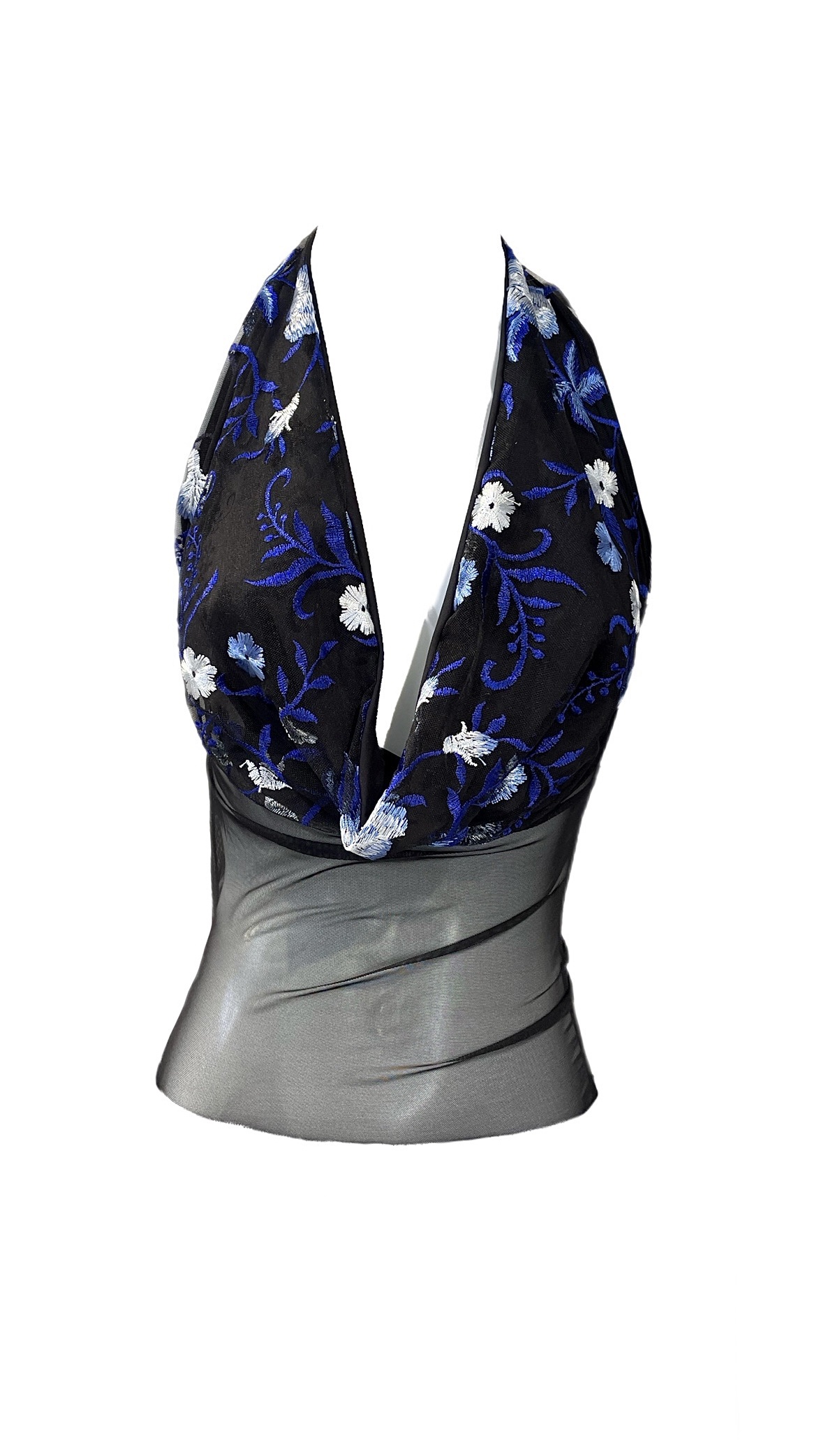 design Blue and Black, em tecido de tule poliamida, detalhe bordado. Edição Limitada