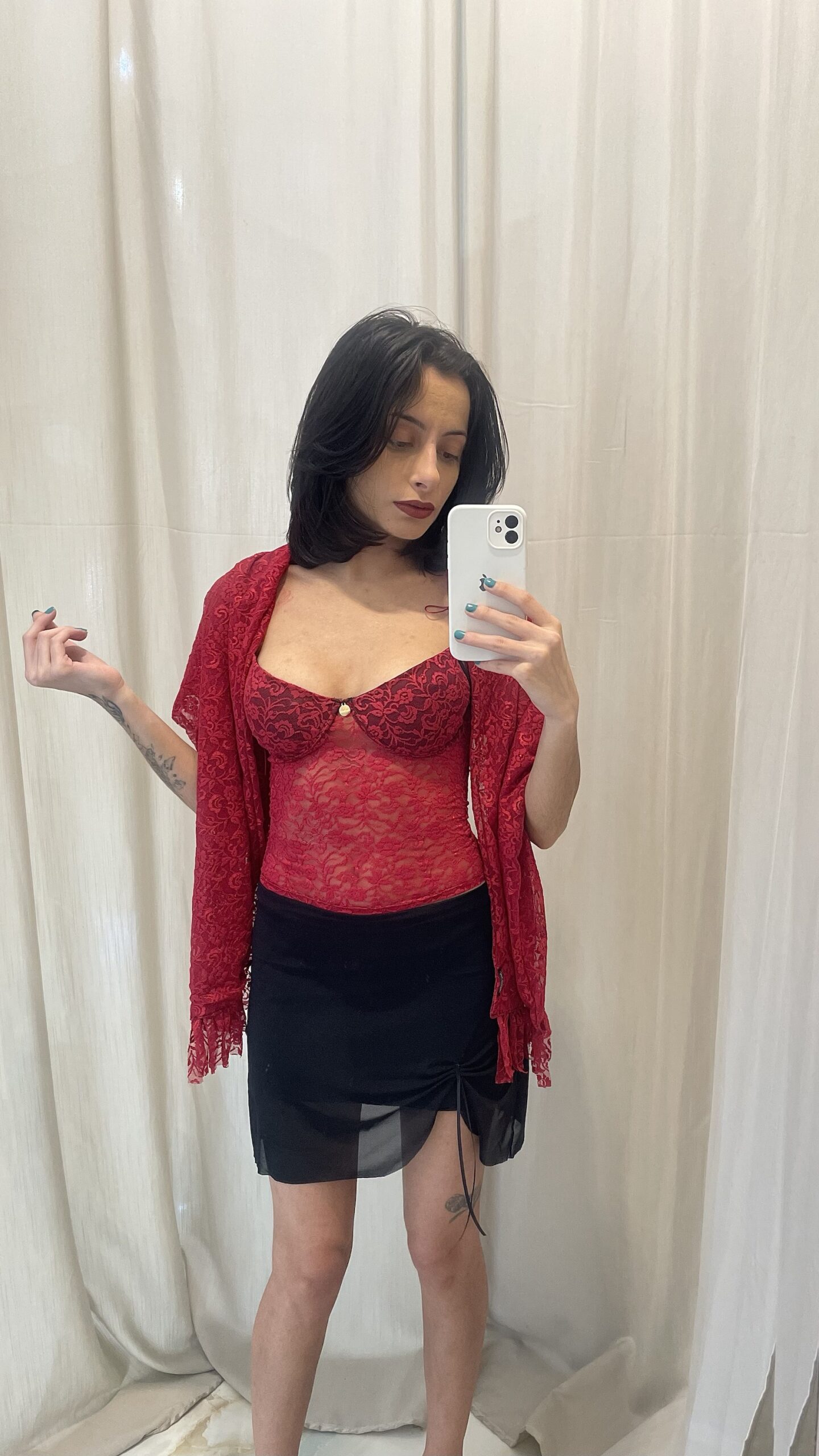 Design Bordue, feito para montar Looks, a Blusa Bordue acompanha aro meia-taça e forro no busto preto tecido de microfibra com poliamida e Renda com elastano, cintura e costas com transparência. Alça fina de amarrar (antes de fazer o lacinho, realize um nó para fixar a alça na medida do seu ombro)