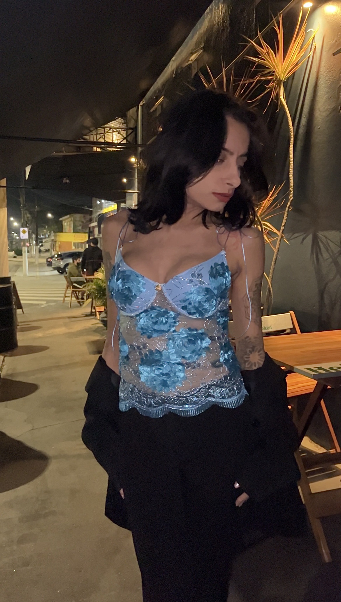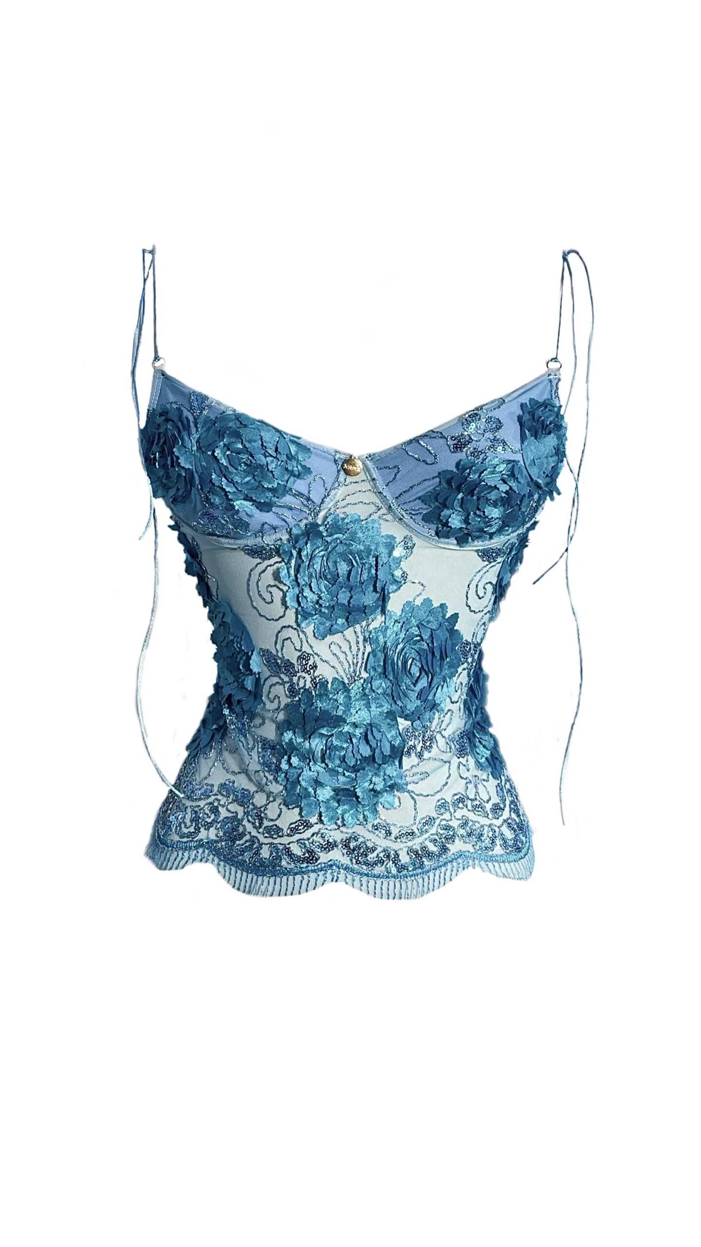 Design Hortênsia, em tule bordado com transparência no corpo e forro no busto toque algodão. Acompanha aro meia-taça e alça fina de amarrar.