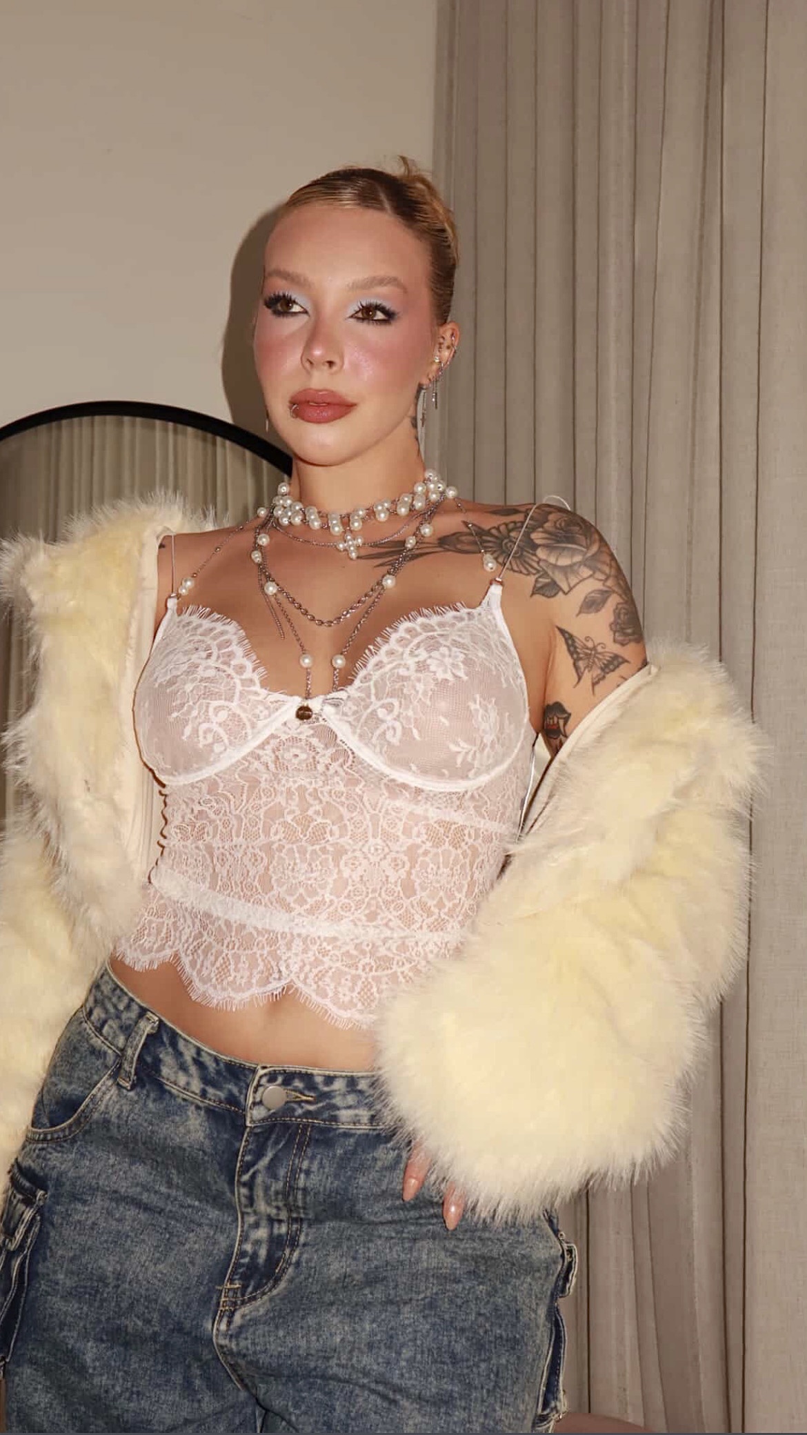 Design Perfecione, feito com Renda de Noiva, acompanha forro no busto (bege) e aro meia-taça.