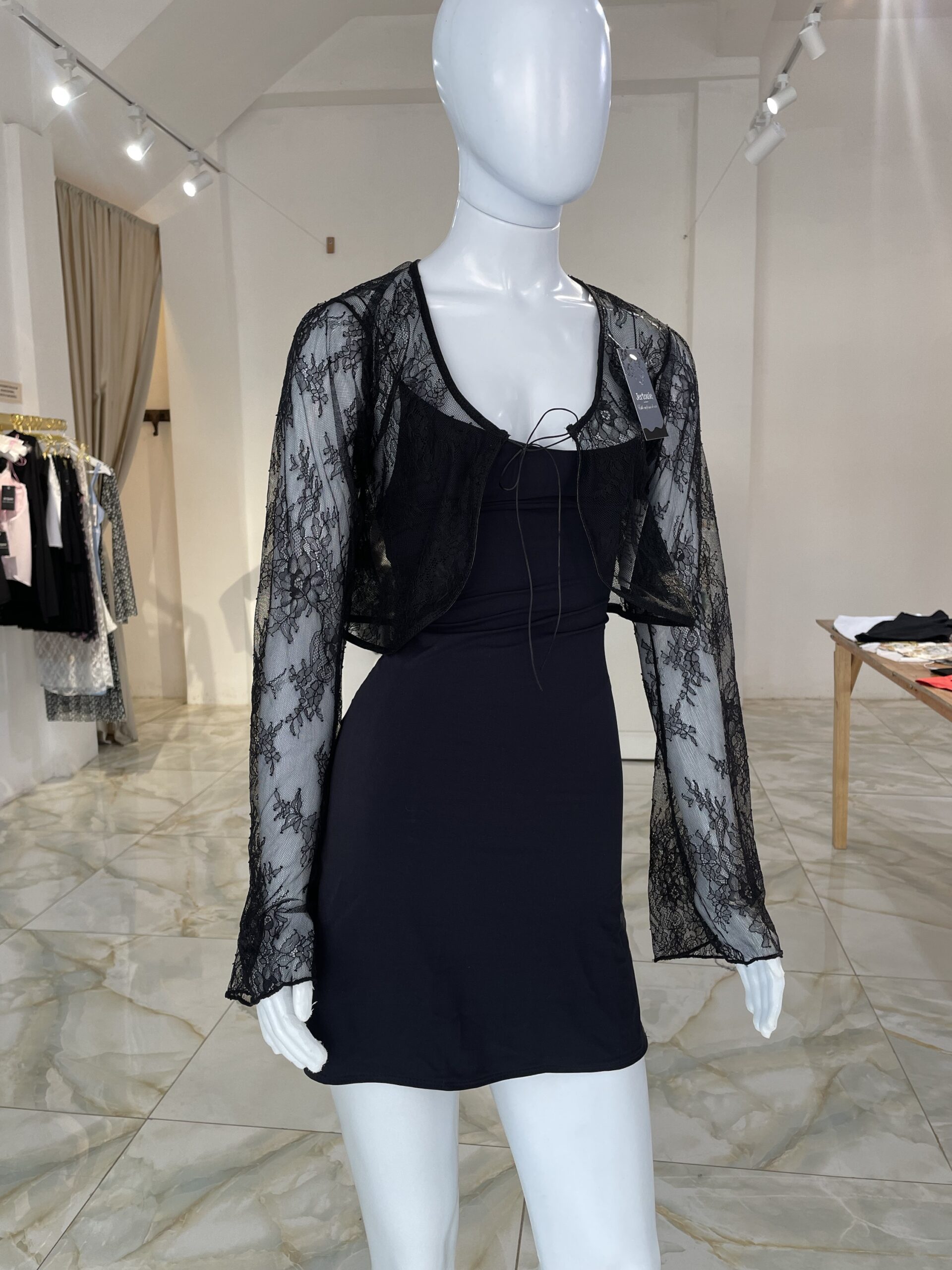 Conjunto Vestido Canelado Preto e Blusa Babe PretoConjunto Vestido Canelado Preto e Blusa Babe PretoR$99,00