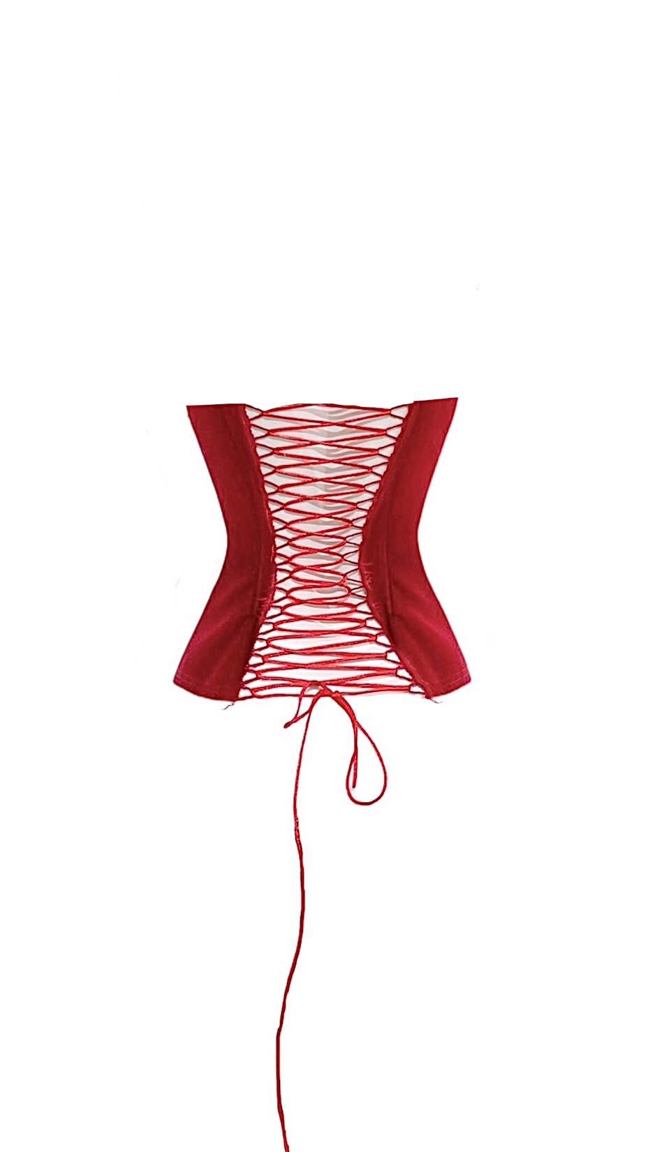 Pode modelar a cintura ao apertar a região das costas. Acompanha o Colar Roseta em veludo.