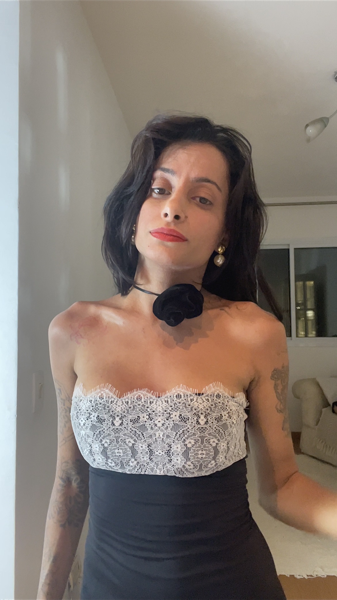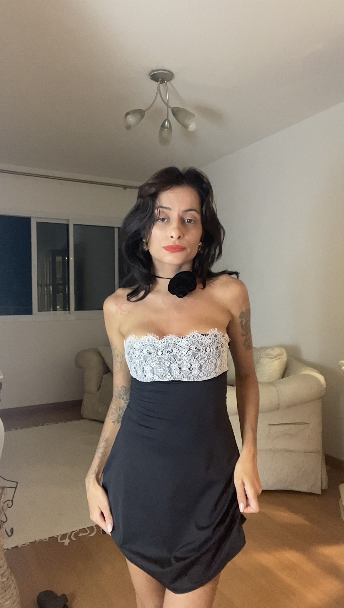 Vestido Canelado Vermelho e Blusa Babe PretoVestido Canelado Vermelho e Blusa Babe PretoR$99,00